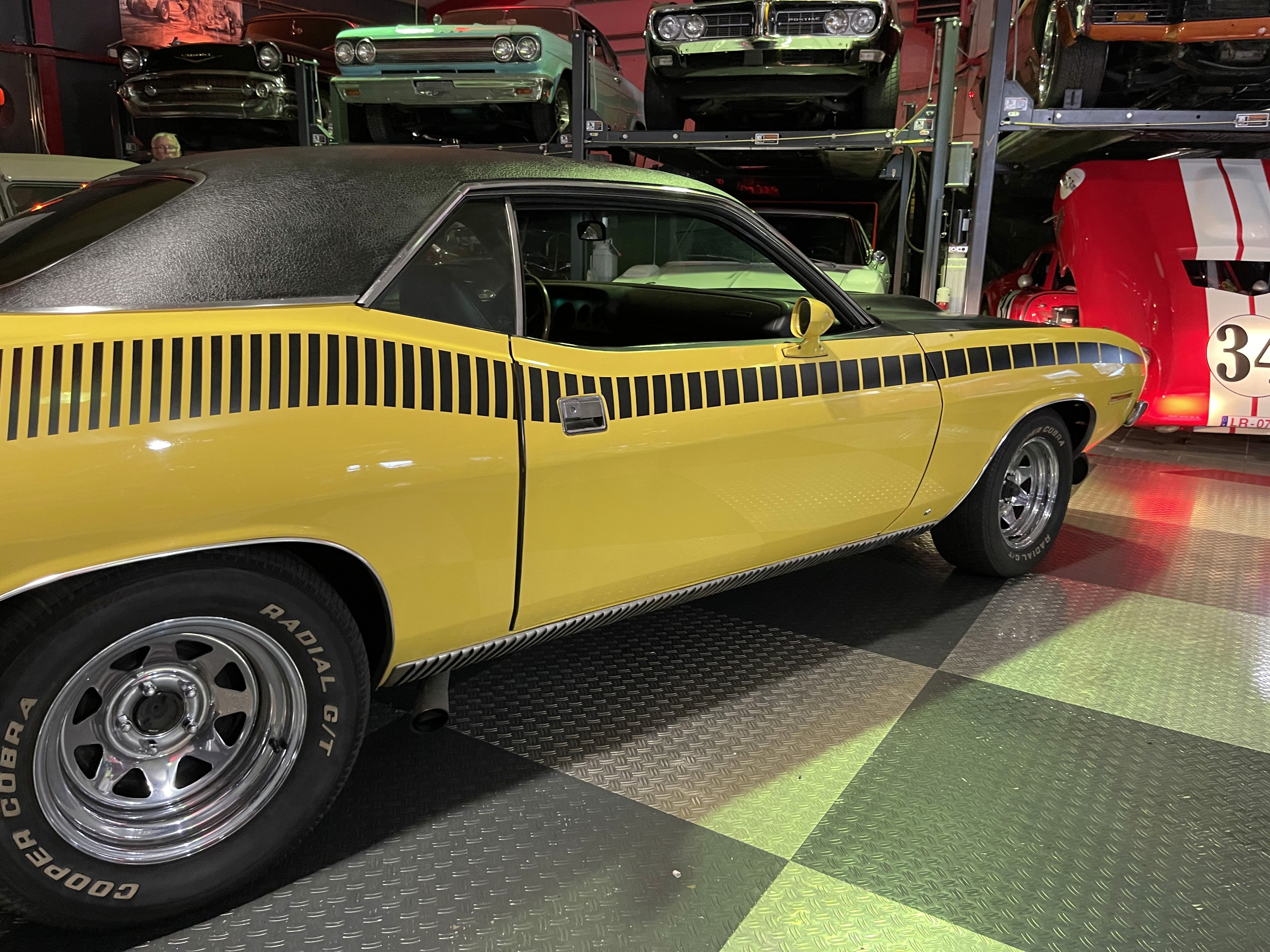 Der Plymouth Barracuda aus dem Baujahr 1970 ist ein ikonischer US Muscle Car und verkörpert pures amerikanisches V8 Feeling. Ausgestattet mit einem kraftvollen 360 cui V8 Motor und Automatikgetriebe bietet dieses Fahrzeug entspanntes Cruisen kombiniert mit sattem Motorsound. Die originale Farbgebung Top Banana Lemon Twist macht den Barracuda zu einem absoluten Blickfang.